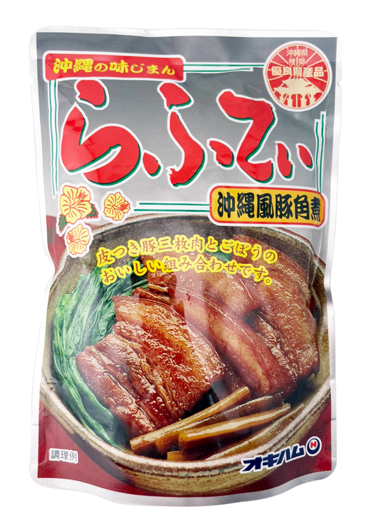 【らふてぃ (沖縄風豚角煮・ごぼう入り) 165g】2袋で送料込 オキハム コラーゲン・食物繊維たっぷり ラフテー 沖縄の味じまんシリーズ 温めるだけ レトルト