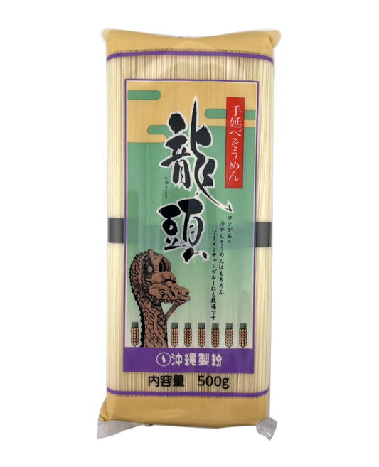 【龍頭そうめん 500g】2袋で送料込 沖縄製粉 3~4か月熟成 乾麺 ソーメンチャンプルーに最適な沖縄の手延べ素麺 りゅうとうそうめん