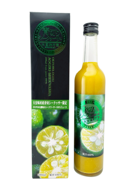 大宜味村産 青切りシークヮーサー500ml 2本で送料込 やえやまファーム 濃縮還元してない自然な風味 果汁100%ジュース ケレス沖縄