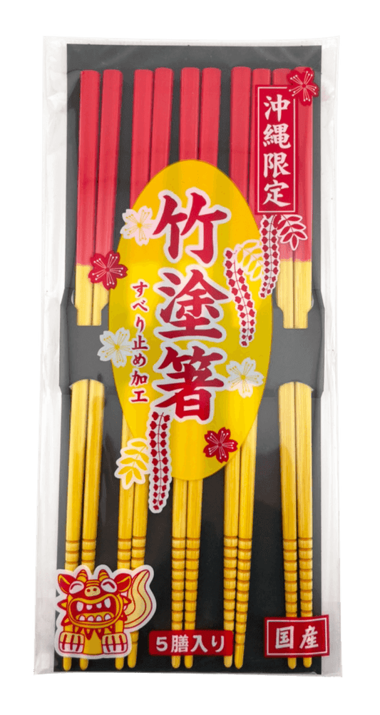 【竹塗箸 赤黄箸 (うめーし) 滑り止め付 5膳入】3袋で送料込 日本製 定食屋さんや沖縄そば屋さんでおなじみ