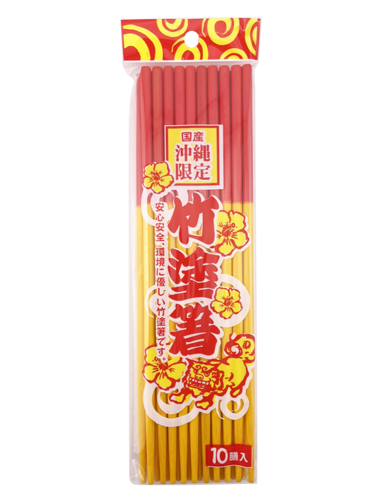 【竹塗箸 赤黄箸 (うめーし) 10膳入】3袋(30膳)で送料込 日本製 定食屋さんや沖縄そば屋さんでおなじみ