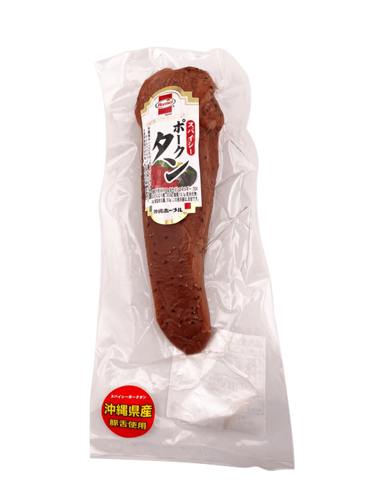 【スパイシーポークタン 約200g】3枚で送料込 沖縄ホーメル 塩漬けした豚のたん(舌)をスモーク 沖縄海水塩使用 コリコリ食感 トンタン