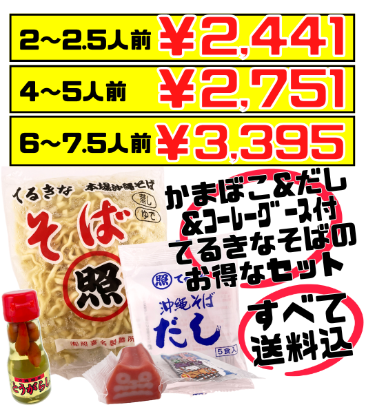 税・送料込!【てるきなそば&そばだし&シーサーかまぼこセット】(2人前~) 製麺した日に発送 人気の生麺とそばだし、かまぼこのセット +220円でコーレーグース追加OK