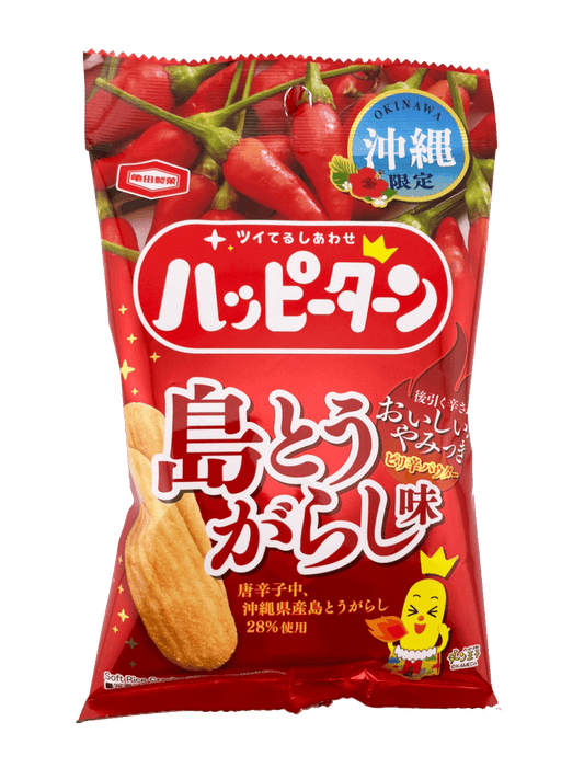 【ハッピーターン 島とうがらし味 34g】3袋で送料込 亀田製菓 ご当地 ピリ辛ハッピーターン 沖縄限定 沖縄県産島唐辛子使用