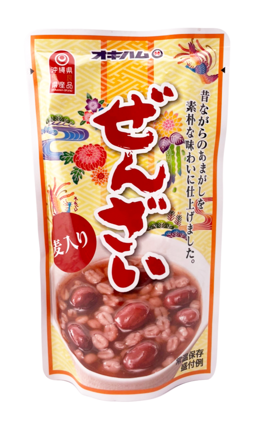 【麦入りぜんざい 1人前 180g】3袋で送料込 オキハム 国産金時豆使用 押麦入 レトルト あまがし かき氷 沖縄スイーツ 冬はホットで 夏はかき氷で