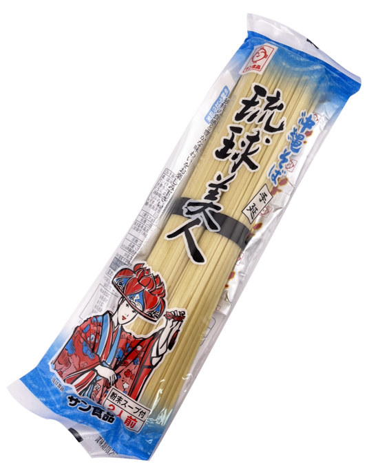 【琉球美人 2食 (2束) 粉末スープ付】3袋で送料込 サン食品 機械を使わない完全手延べの沖縄そば 日持ちする乾麺