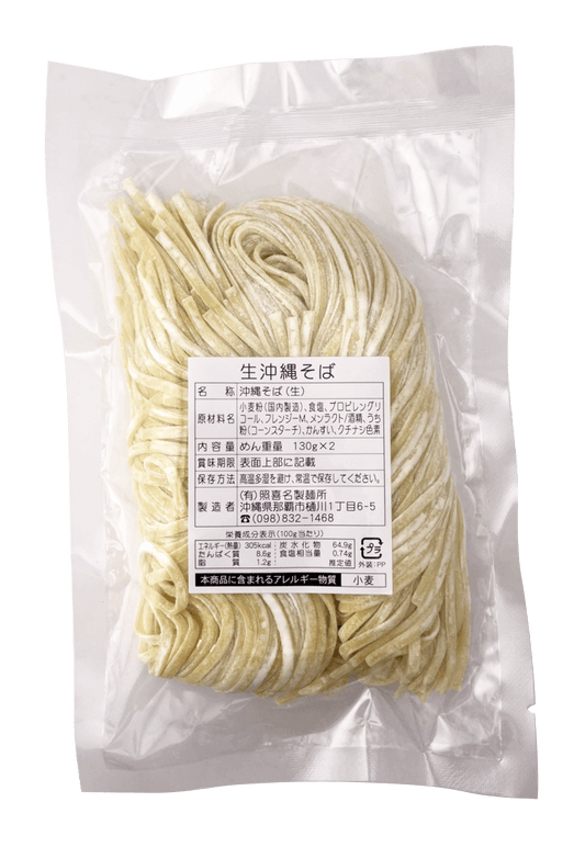 【生沖縄そば 2人前 (130g ×2)】2袋で送料込 照喜名製麺所 そばだしは別売 賞味期間長持ち30日 半生タイプ 喉越しの良いモチモチストレート麺